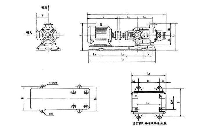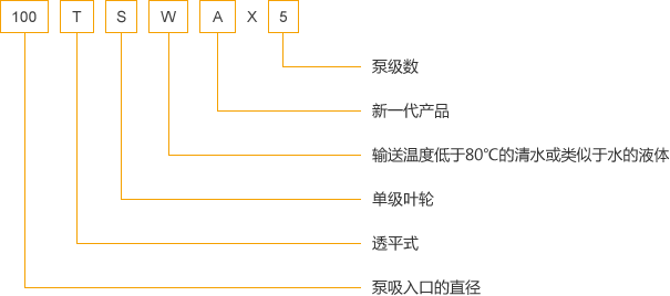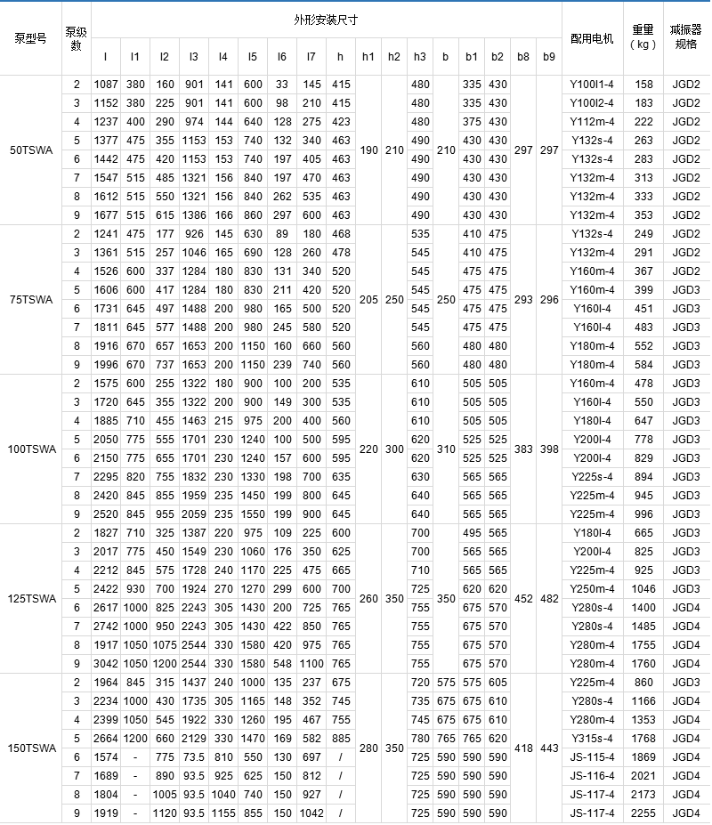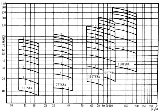TSWA multistage centrifugal pump series of five varieties of 40 specifications, the performance range Flow Q = 1.5 ~ 191m3/h, head h = 17 ~ 247m, speed n = 1450r/min.
