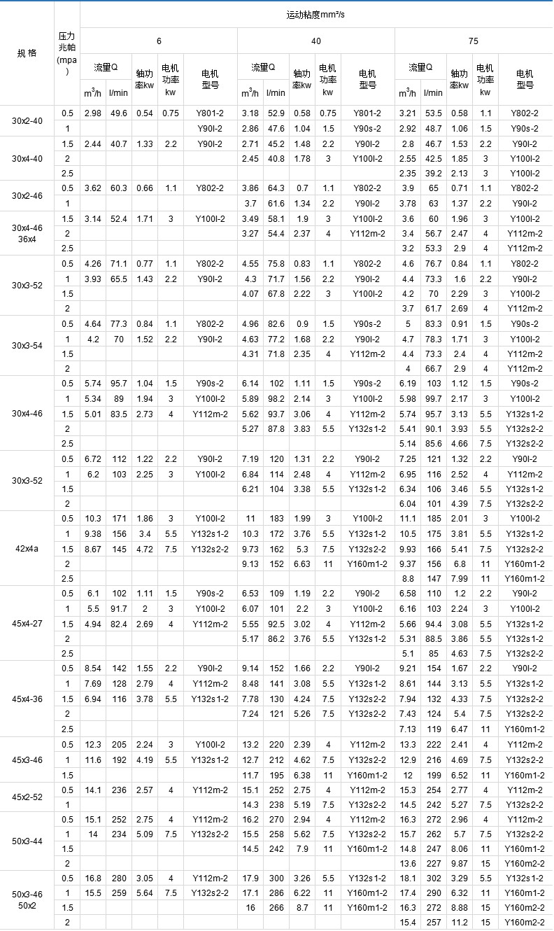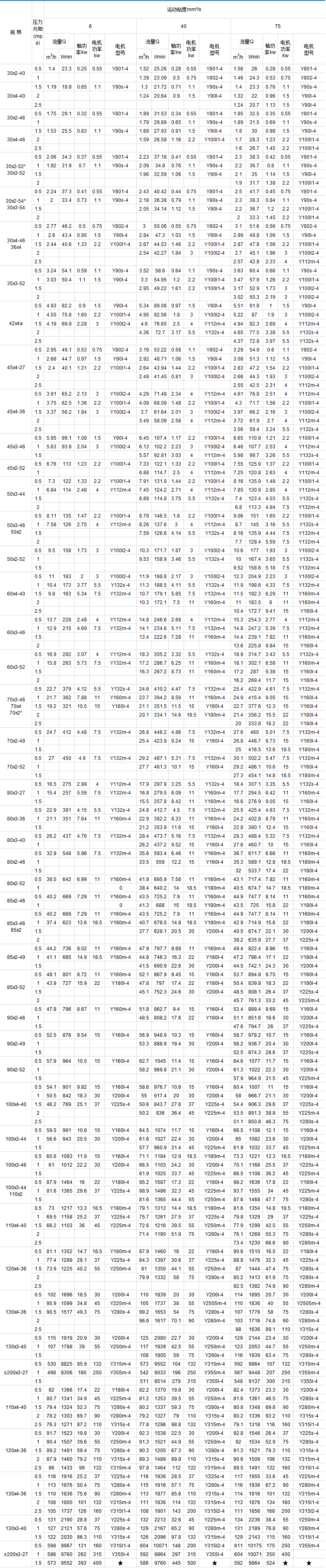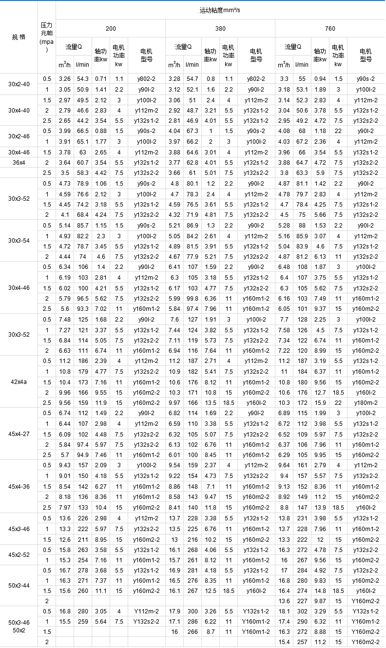 3GBW.3G.3GR series screw pump performance parameter table (rotational speed: 2900r/min)