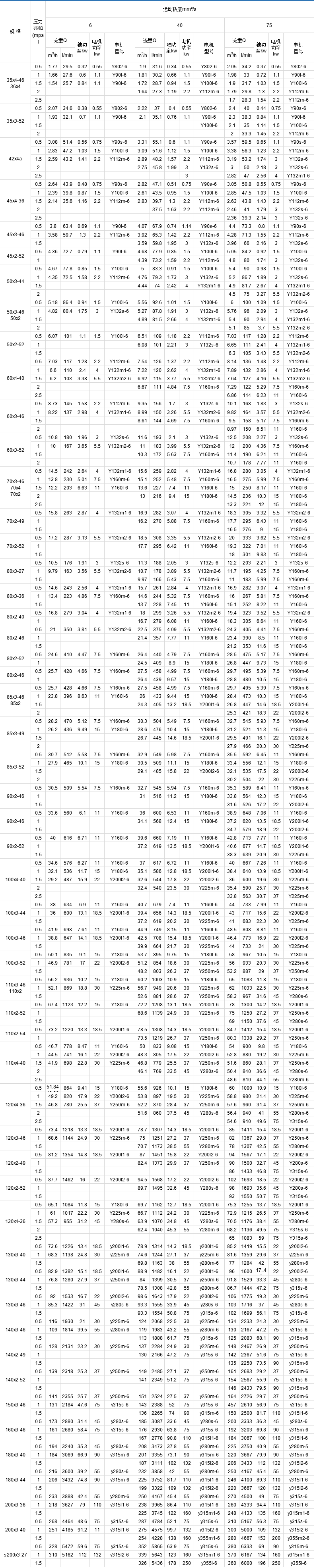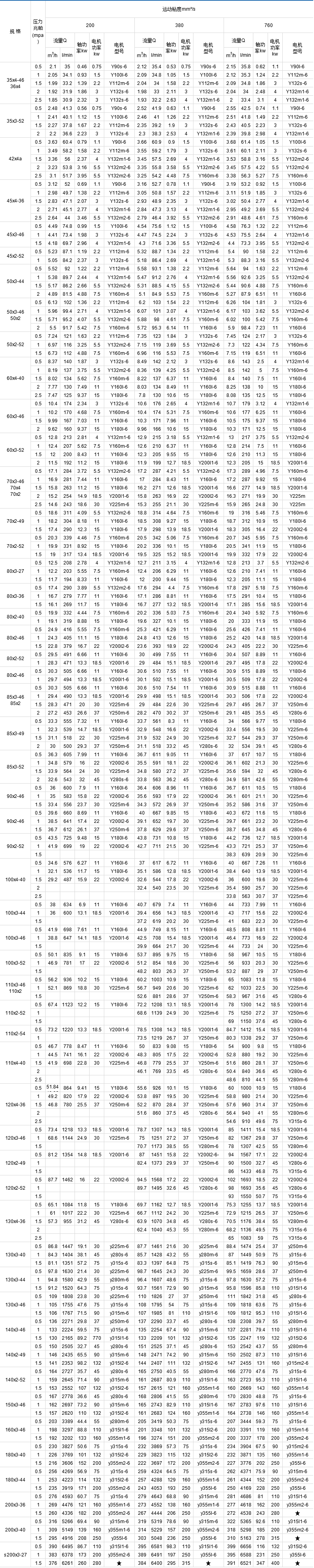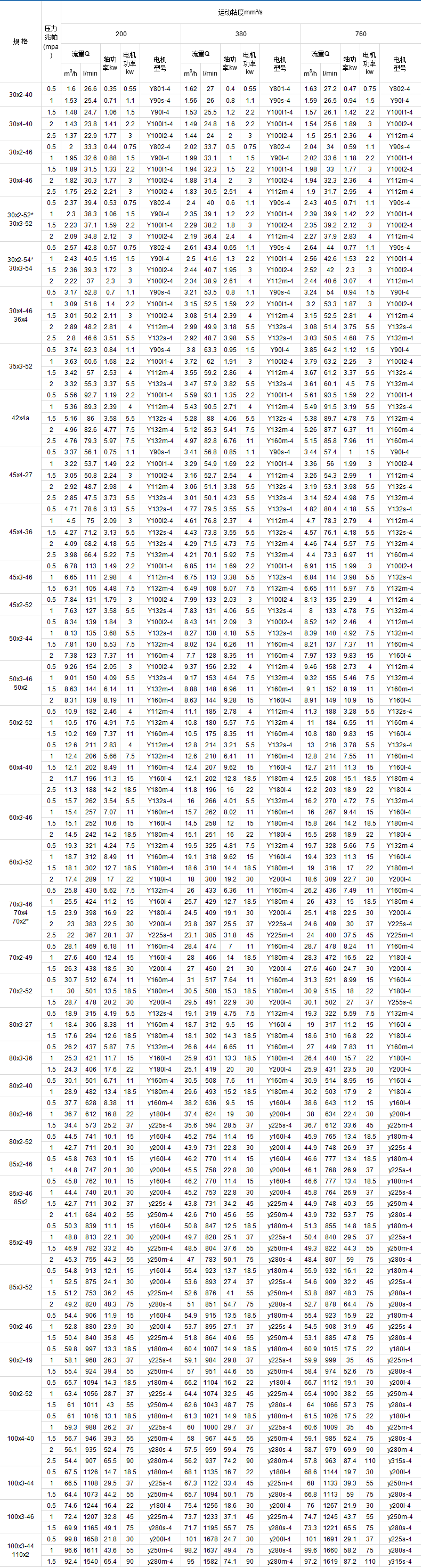 3GBW.3G.3GR series screw pump performance parameter table (rotational speed: 2900r/min)