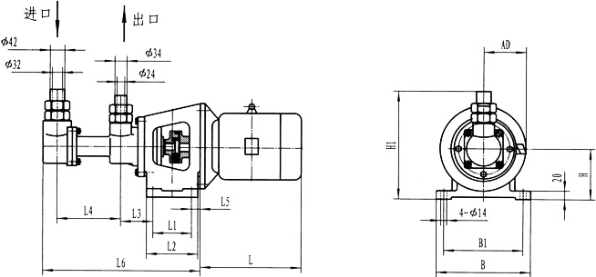 3G,3GR42x4a type flange type pump outline and installation dimensions