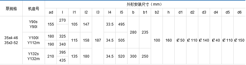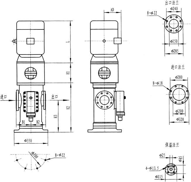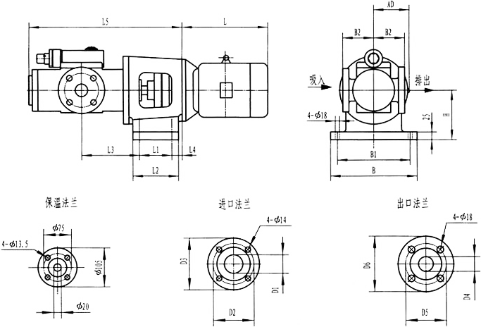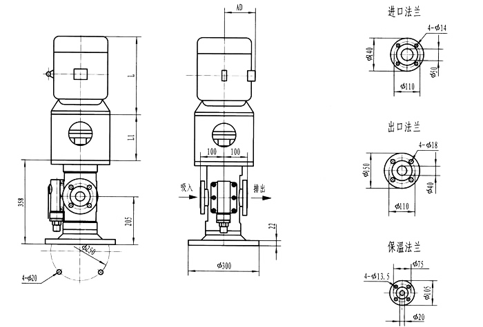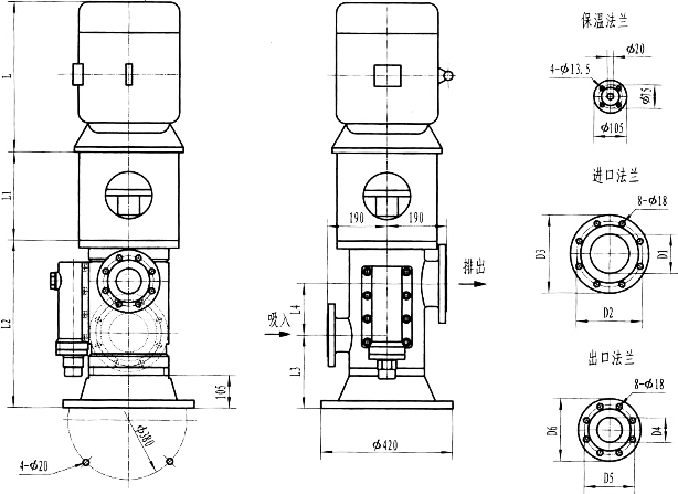 3GLBW35,3GL35 type flange type pump outline and installation dimensions