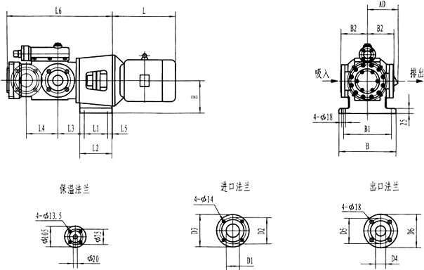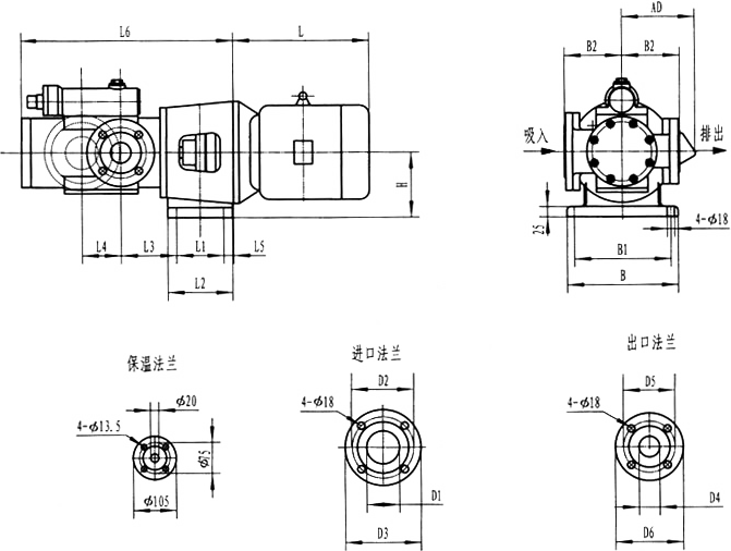 3GBW60(70),3G60(70) type flange type pump outline and installation dimensions