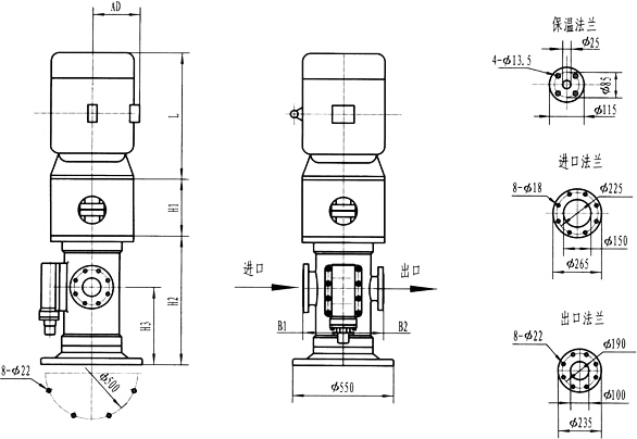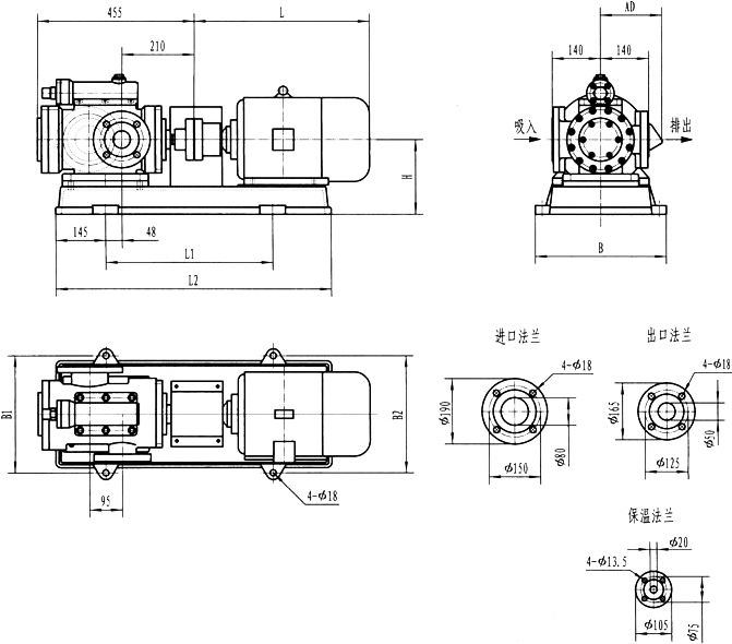 3GBW130(140),3G130(140) type flange type pump outline and installation dimensions