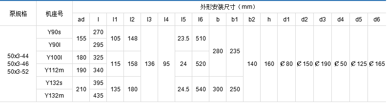 3GFBW50,3GF50 type flange type pump outline and installation dimensions