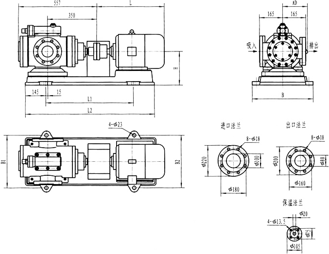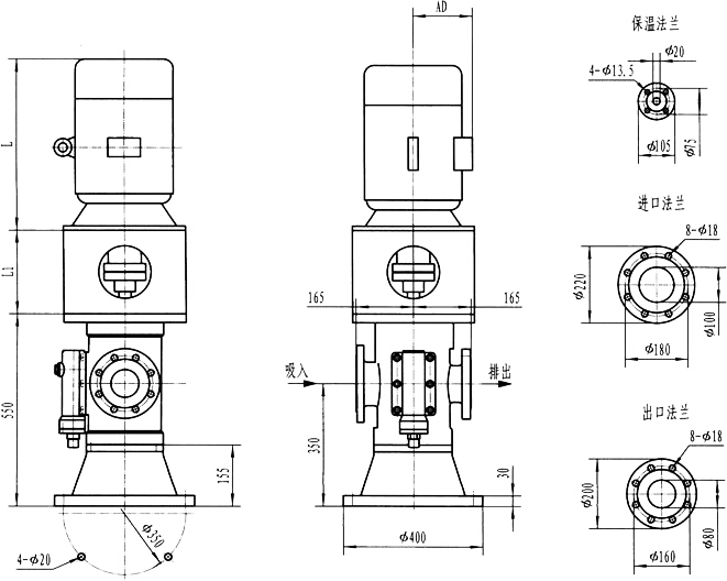 3GLBW180(200),3GL180(200) type flange type pump outline and installation dimensions