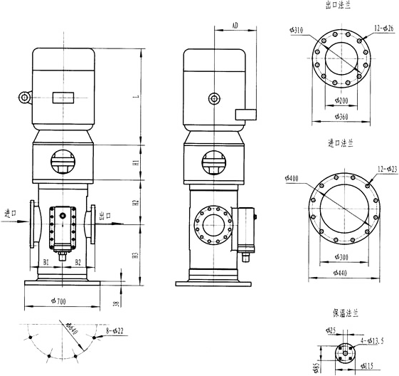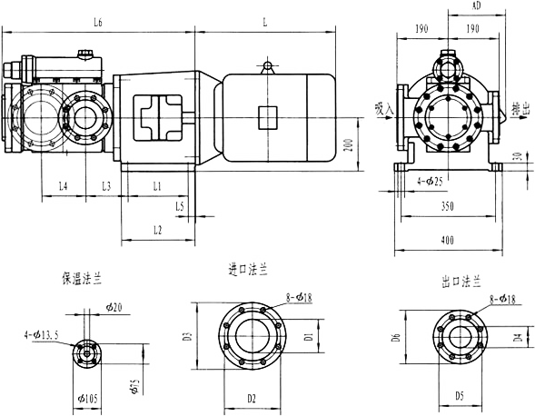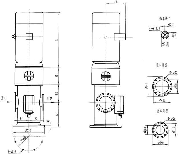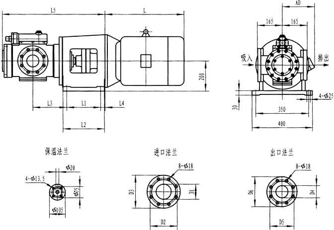 3GBW200,3G200 type flange type pump outline and installation dimensions