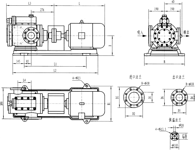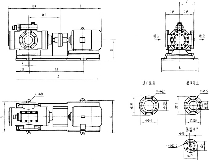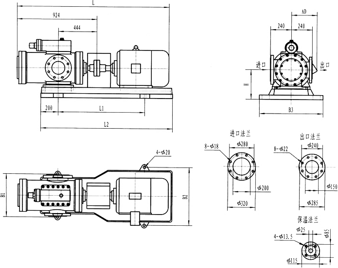 3GBW85(90),3G85(90) type flange type pump outline and installation dimensions