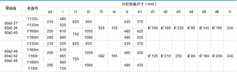 3GLBF80(85),3Gl80(85) type flange type pump outline and installation dimensions