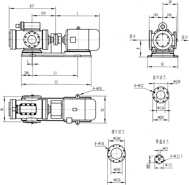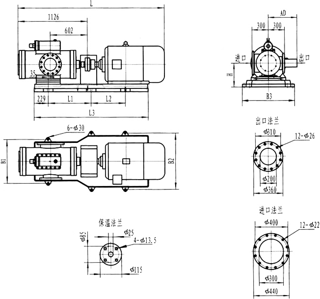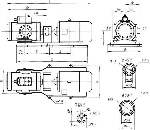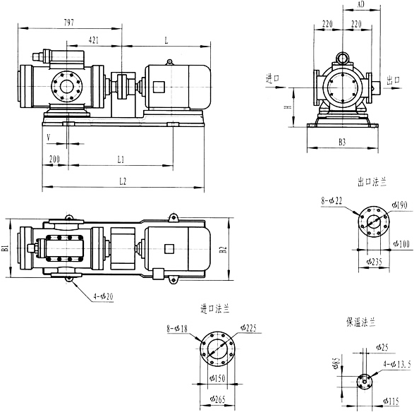 3GBW80(85),3G80(85) type flange type pump outline and installation dimensions